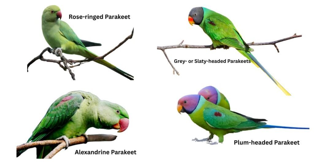 | Which parrot species are covered? | • Rose-ringed Parakeet (Psittacula krameri) • Alexandrine Parakeet (Psittacula eupatria) • Plum-headed Parakeet (Psittacula cyanocephala) • Grey- or Slaty-headed Parakeets |
